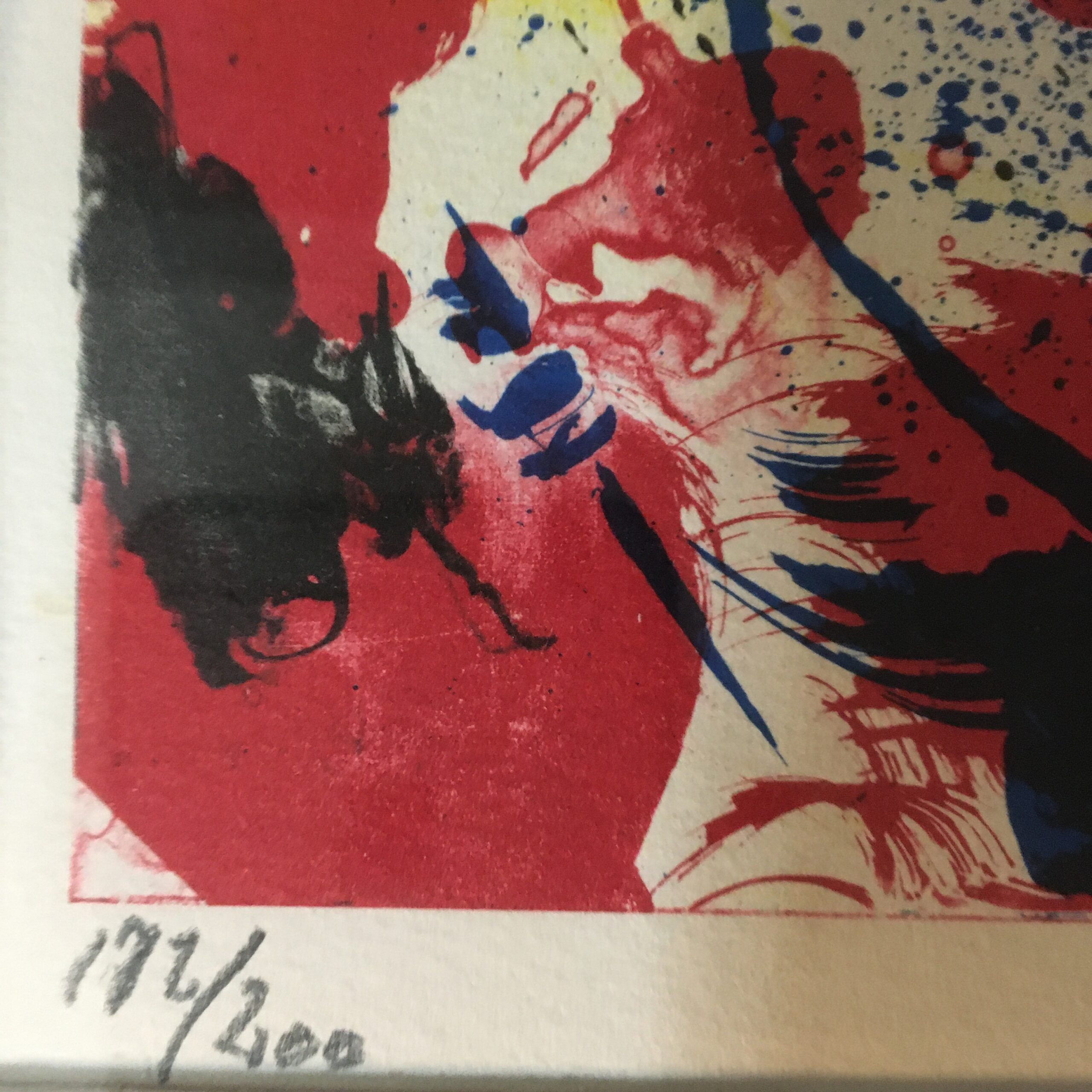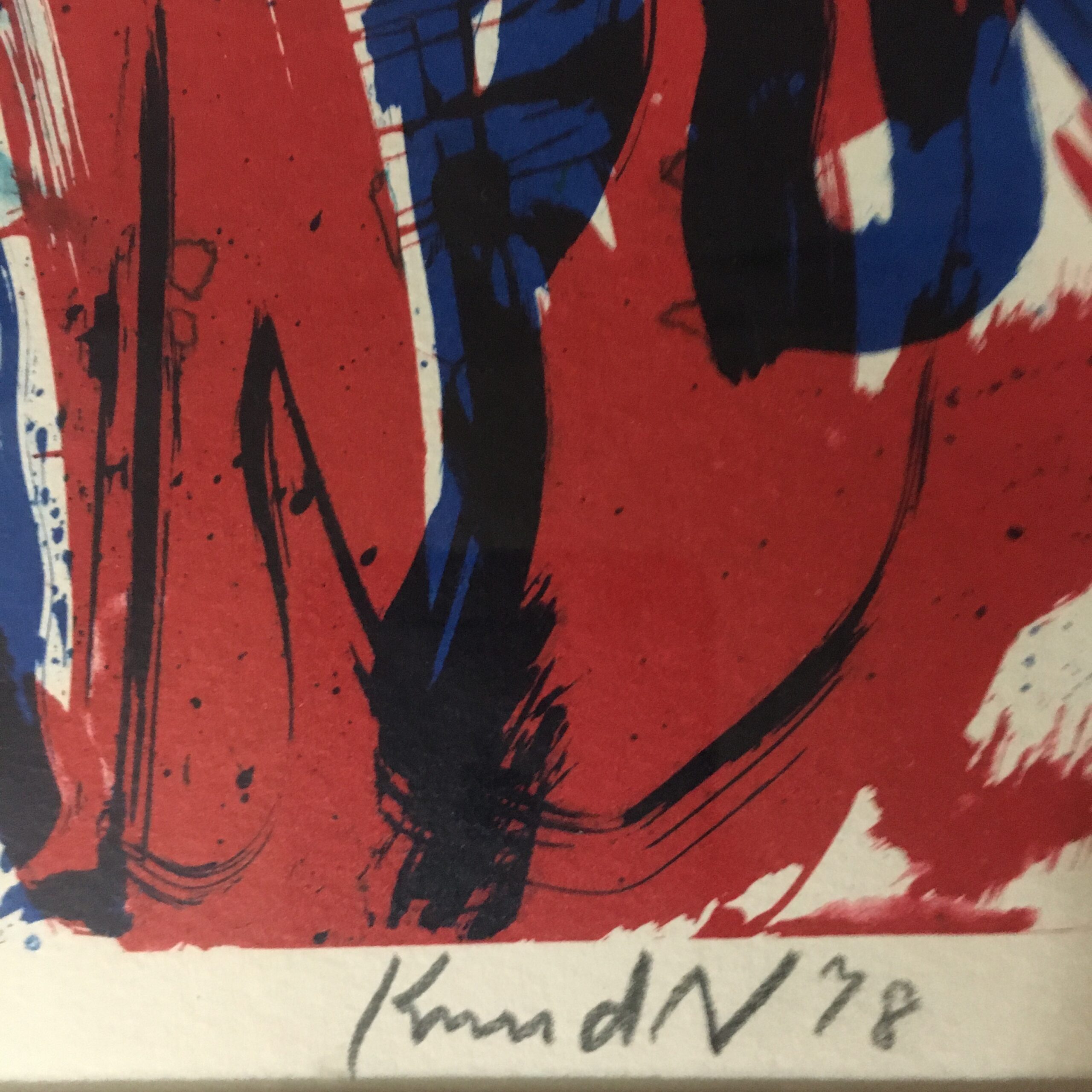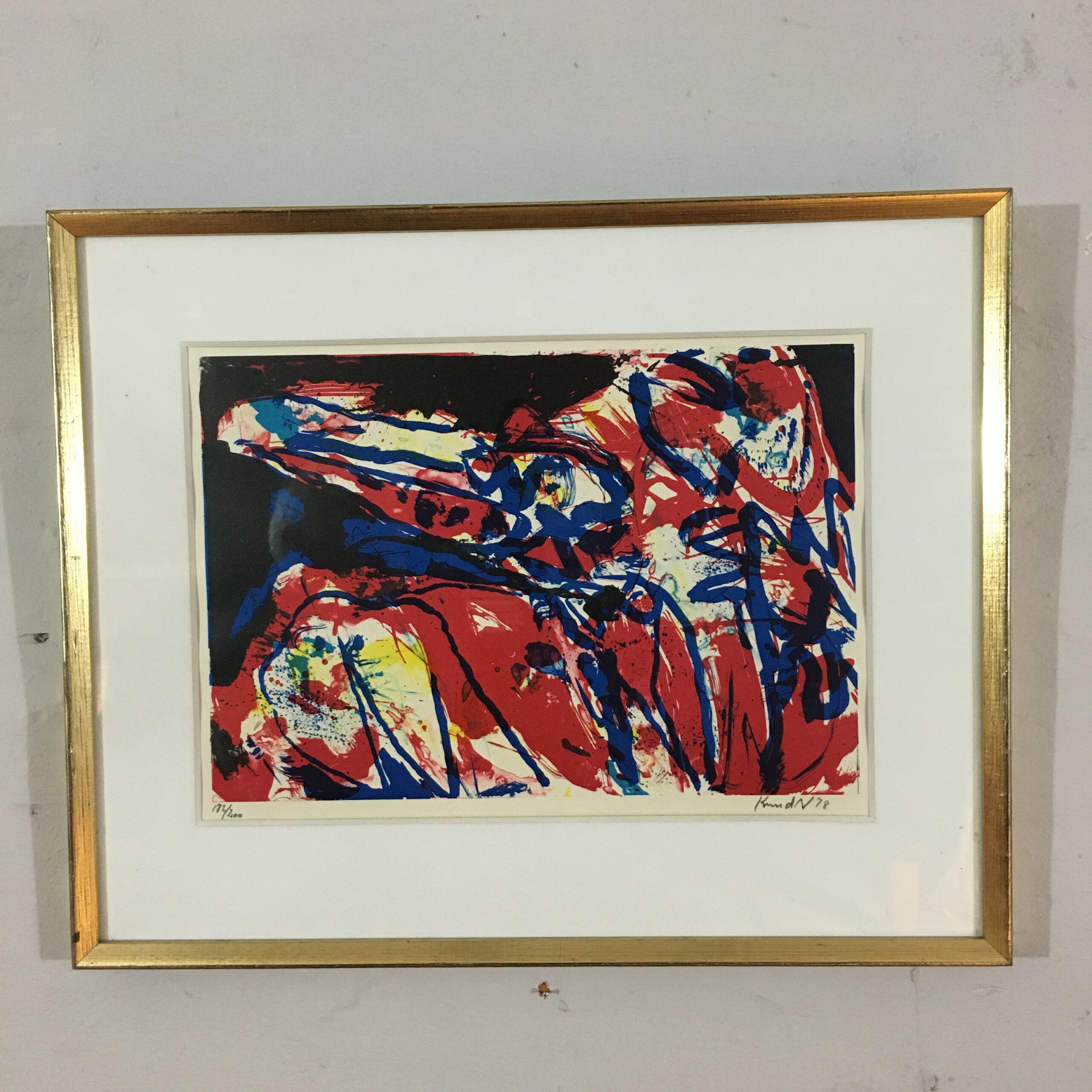 Abstrakt. er et originalt litografi signeret ”Knud K 78” nr. 172/200. Lys mål 30 x 40 cm og ramme mål 46 x 56 cm. Det er med pas partout og en gylden træramme.