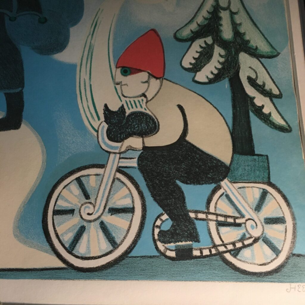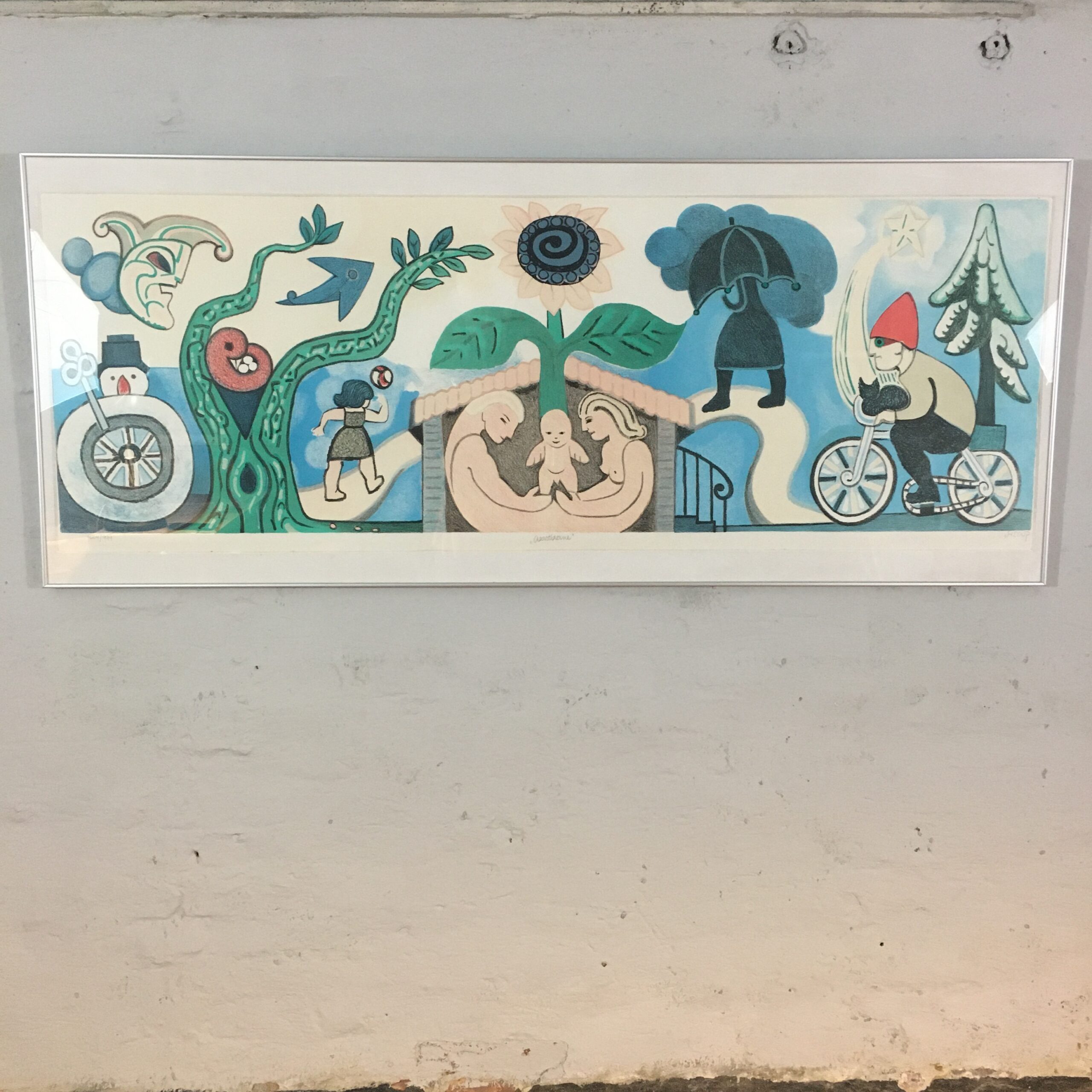 Henry Heerup: “Årstiderne” (the Seasons”). An original lithographical artwork by the Danish artist and co-founder of COBRA in 1948. Printed in the 1980´s Signed by Heerup. No. 424/999. Visible size 48 x 136 cm. Frame goal 58 x 148 cm. Passe par tout and an alu frame. 11000 dkr/1490EUR.
