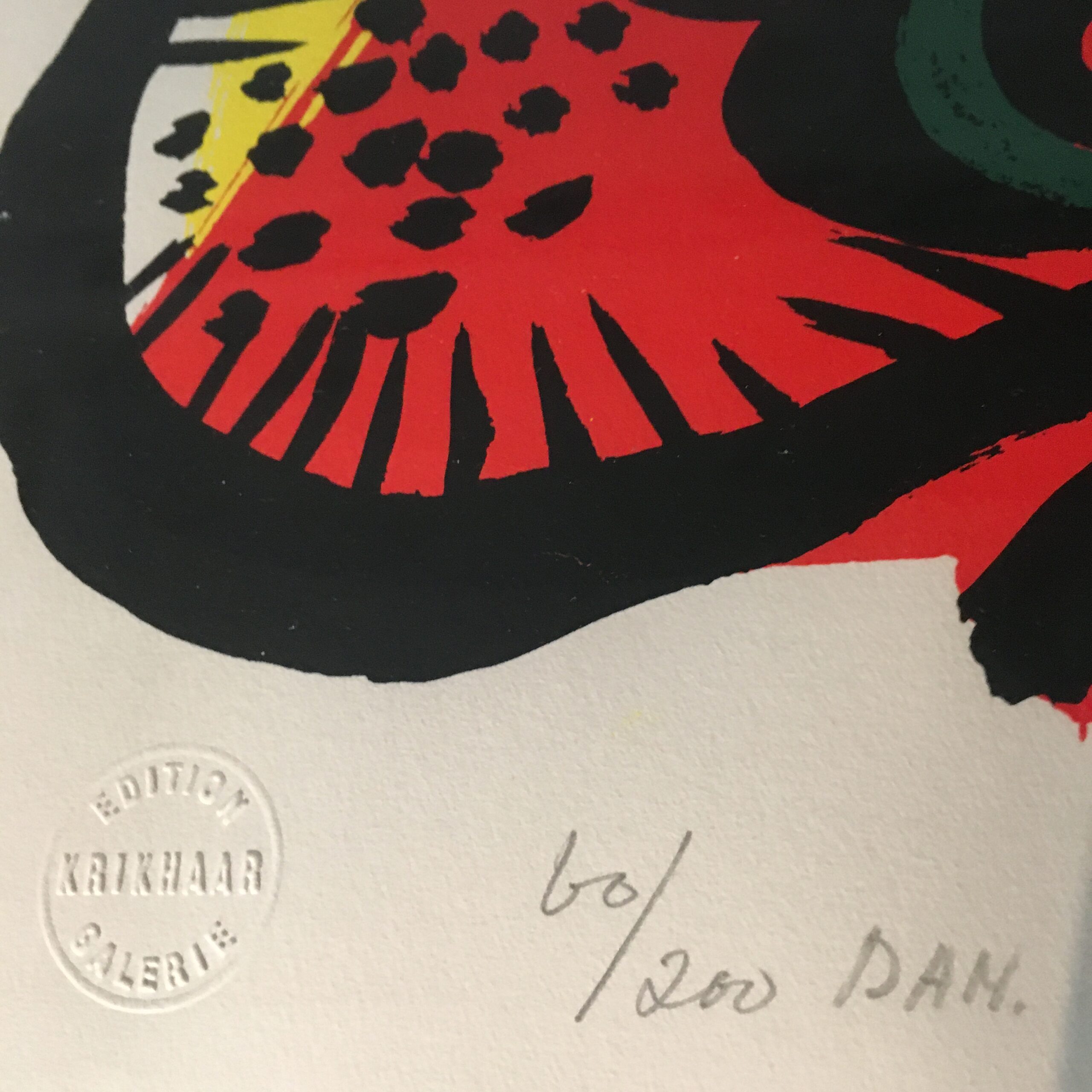 Anton Roskens: “Birds”. Original lithographical work from 1971. Published by the legendary “Edition Krikhaar Galerie in Amsterdam. No. 60/200. Signed by the artist. Visible size : 53 x 70 cm and frame goal 70 x 90 cm. Alu frame and with passe par tout. 3500 dkr. /500EUR.