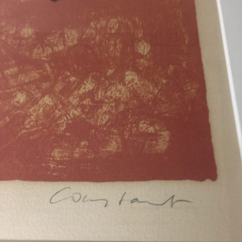 ”Pour Jorn” eller ”For Jorn” er skabt i 1976 ved Asger Jorns død, hvor Constant sammen med en hel række Cobra kunstnere skabte en stor kunstmappe til minde om en af hovedkræfterne bag den enestående, internationale kunstgruppe, COBRA. som revolutionerede forståelsen af ”hvad kunst er”!