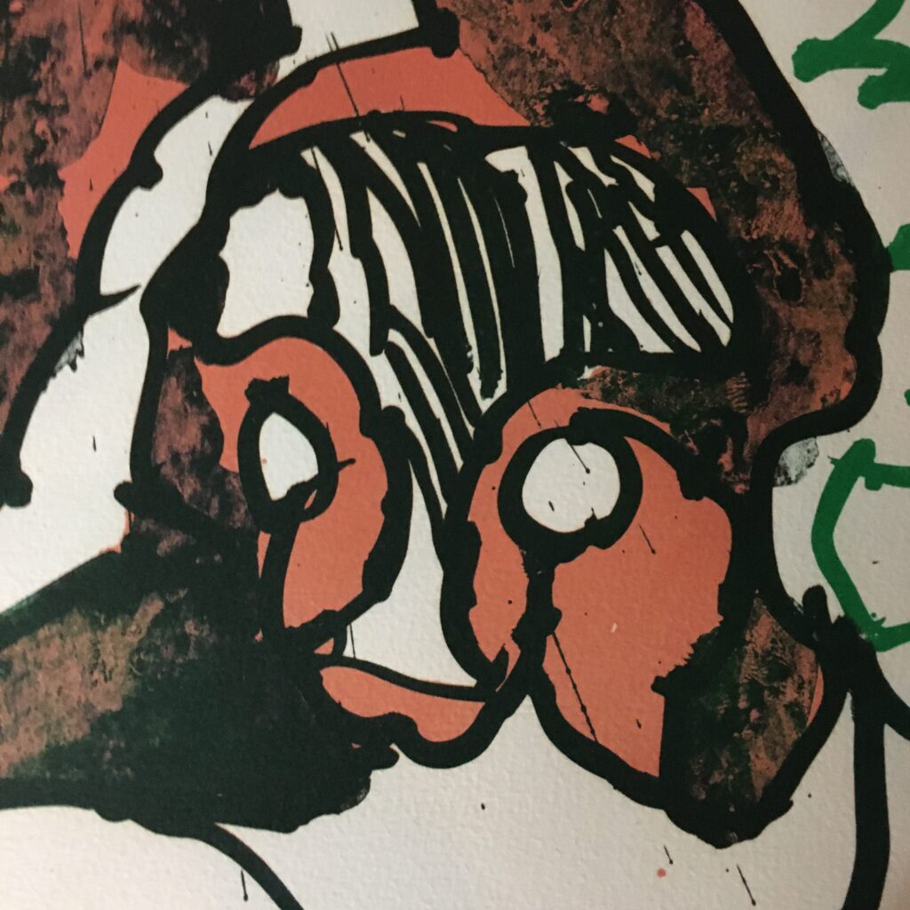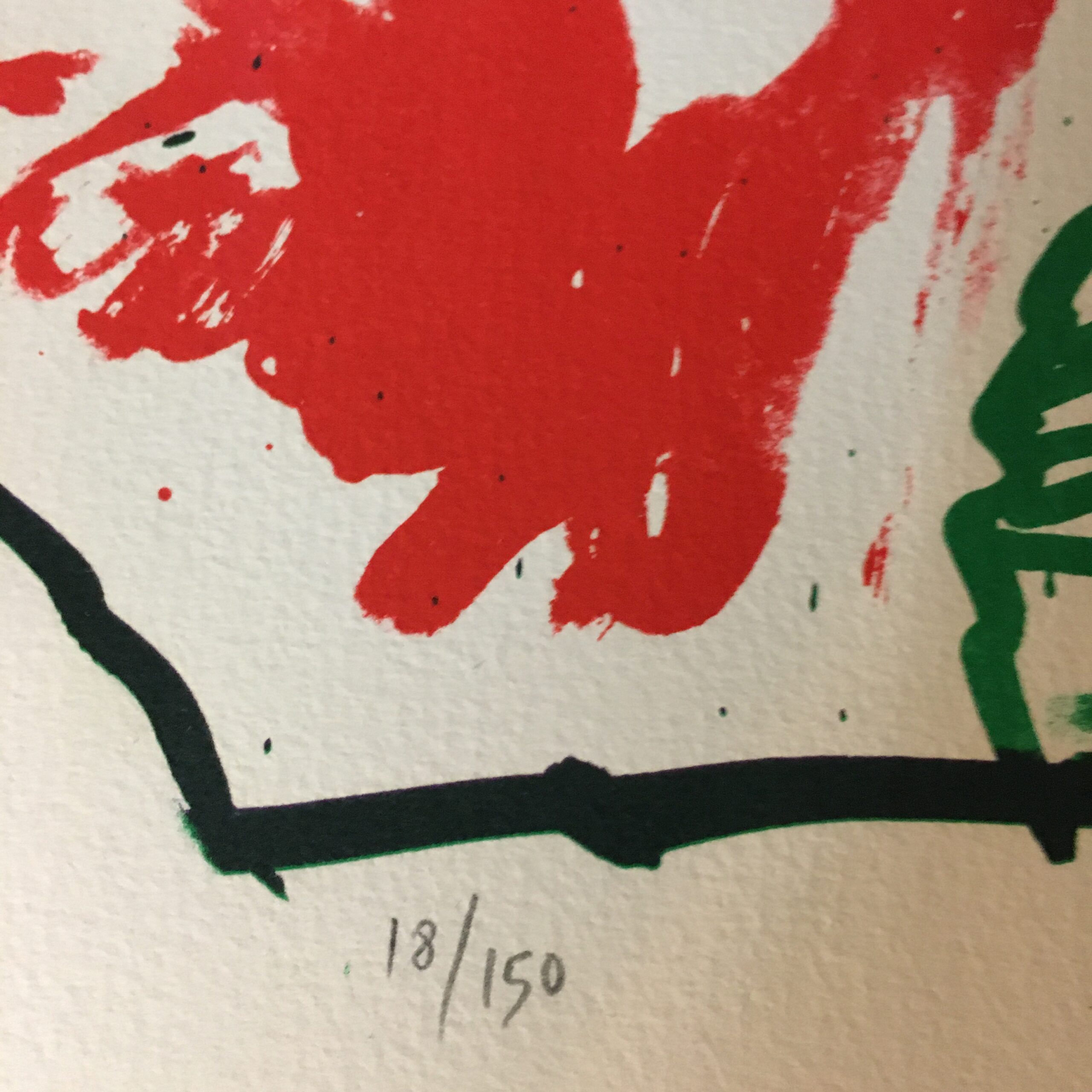 Pierre Alechinsky: Litografi fra mappen ”Gnomes et Gnose” (”Grøn sol”) Indrammet 18000 kr Uindrammet 16000 kr.