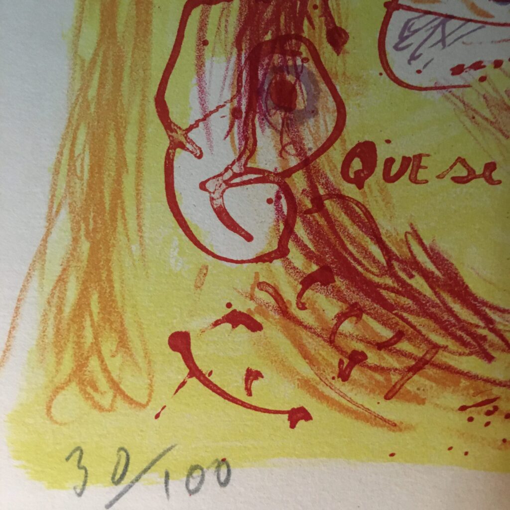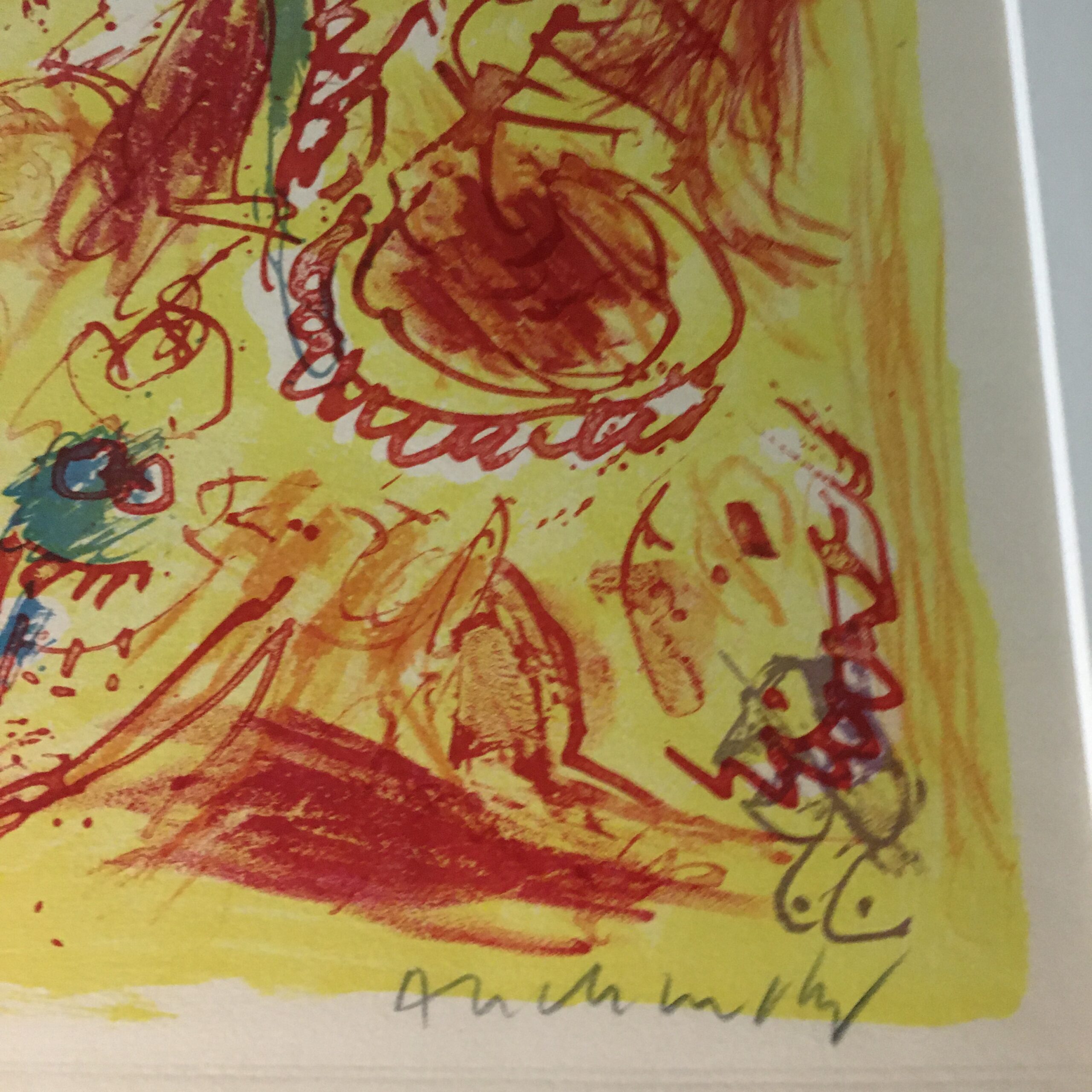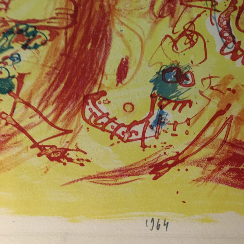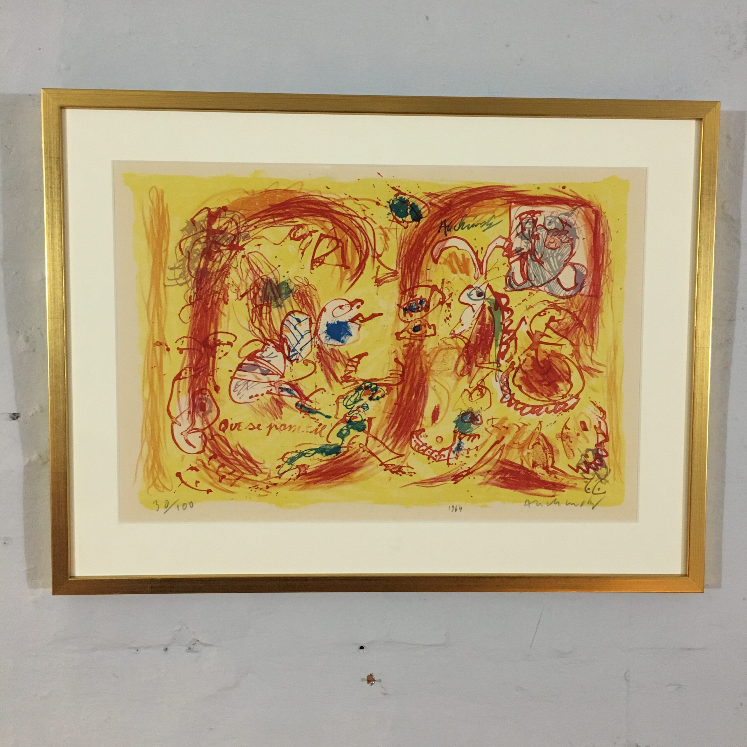 Pierre Alechinsky: “Golden abstract motiv” (Gyldent abstrakt motiv). Signed 1964. Original color lithography. Signed by Alechinsky. No. 30 of 100 prints. Visible size 30 x 45 cm. Frame goal 42 x 56 cm. New golden wood frame with passe par tout. 9800 dkr./1400 EUR.