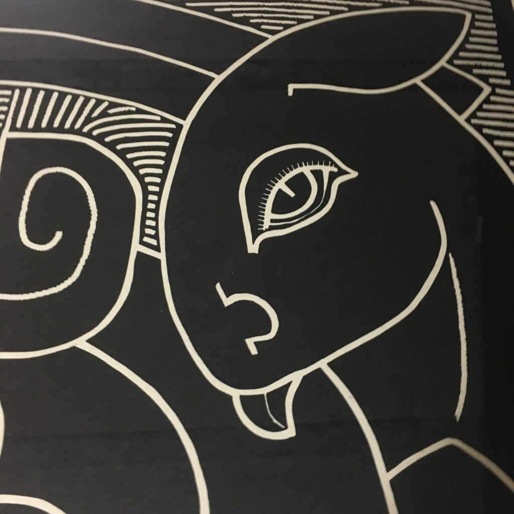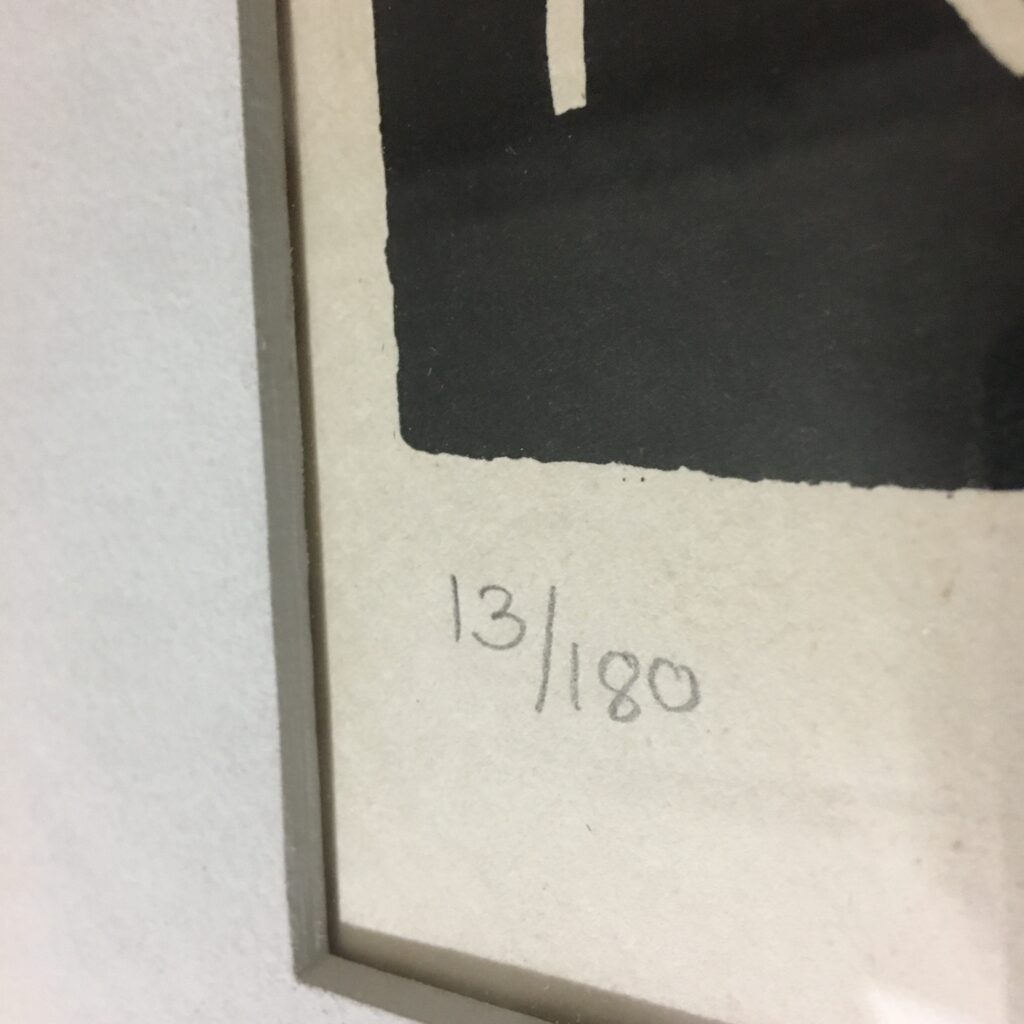 Henry Heerup: “Hjertets ensomhed or” The loneliness of the heart” is an original lithograph work created in 1976 as a linoleum print and later as a lithographic work. Signed by the artist. It’s number 13/180. Visible size 53 x 69 cm. Frame goal 68 x 85 cm. With a pass par tout and a silver-colored wood frame. 5500 dkr/725EUR.