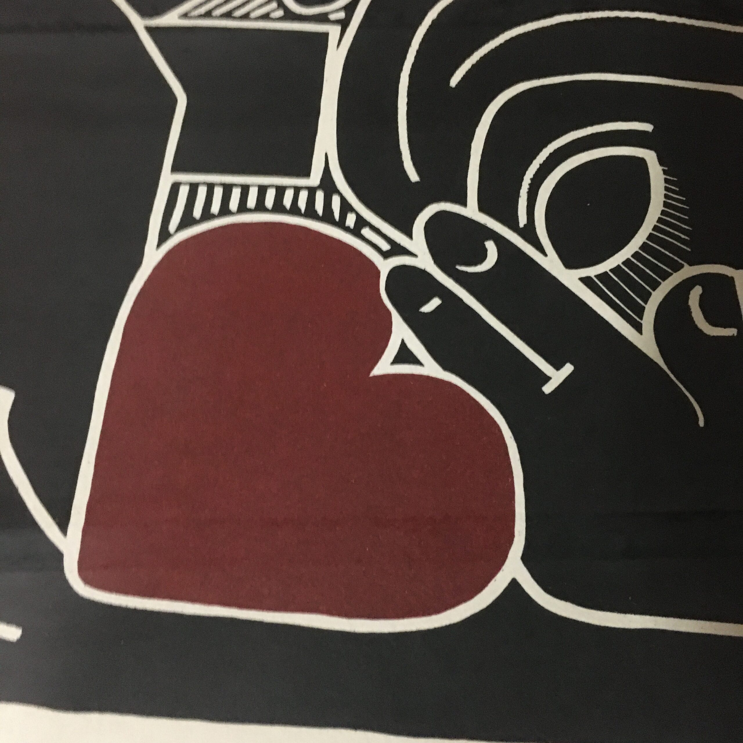 ”Hjertets ensomhed” er et af Heerups mest elskede tryk. Oprindeligt i 1954 skabt som et linoleumstryk i 2 farvet, 81 x 111 cm og kun signeret i 10 eksemplarer. Dette litografi er trykt i sort og rødt i 1974 efter linoleumstrykket, som nr. 13 ud af 180 eksemplarer og signeret af Heerup. Lysmål 60 x 53 cm og værket er med pas par tout og en gylden træramme, 86 x 85 cm. Trykt af Sandberg, Sverige. Forlag: Galleri Mostrup. Og en sjældenhed.