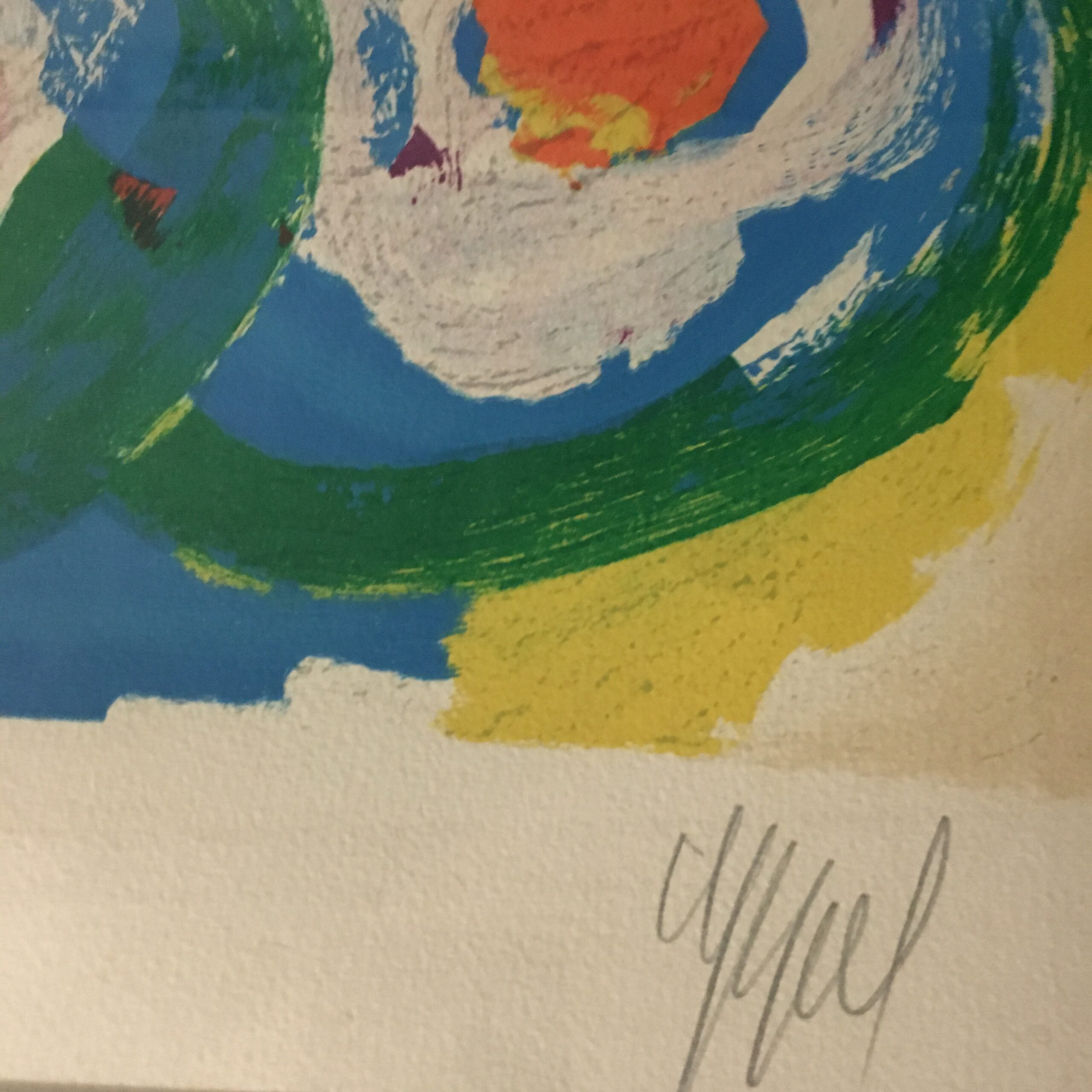 Karel Appel: “I´m just messing around a bit” (” Jeg fjumrer bare lidt rundt”) Original colored lithographical Work signed by Appel. No. 41 of 110 copies in total. Visible size 70 x 52 cm. And Frame goal 86 x 66 cm. With new oak wood frame and passe par tout. 9000 dkr/1200EUR